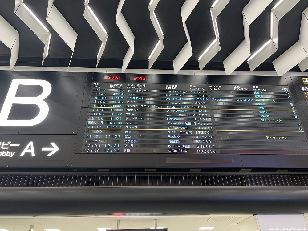 それにしてもこの時間帯は日本行きの便が多く、コードシェア便がタブルで記載されていることを除いても日本行きの便が4便ほぼ同時刻に出発し、東京・大阪・名古屋の各都市へ向かうのだ。