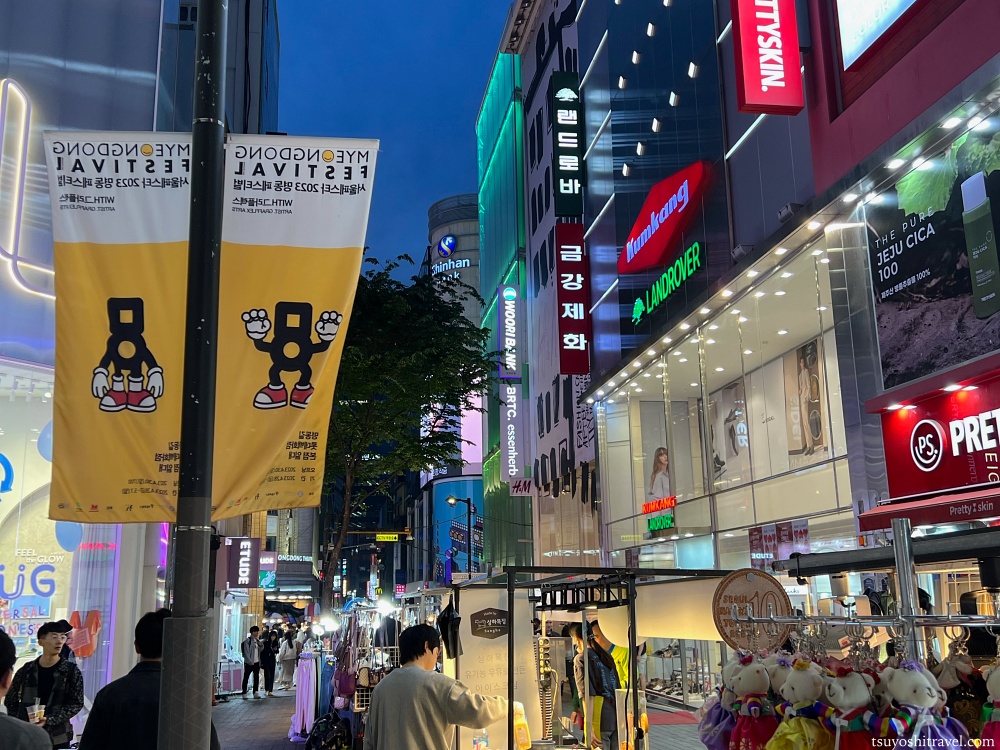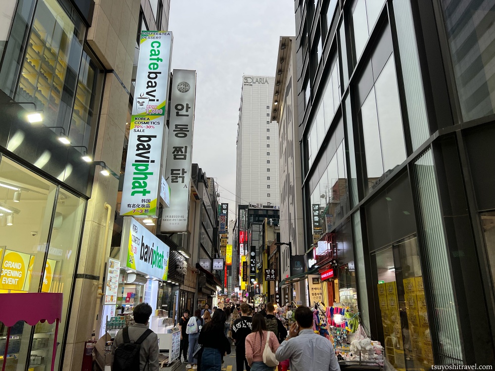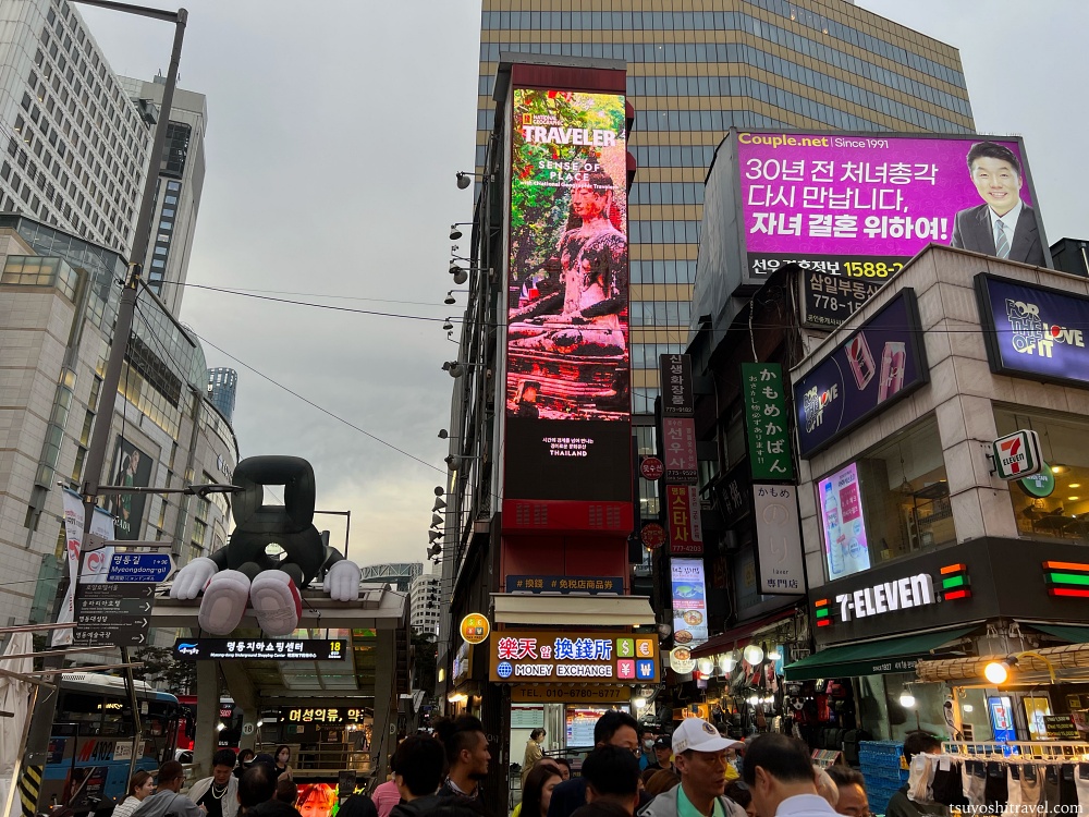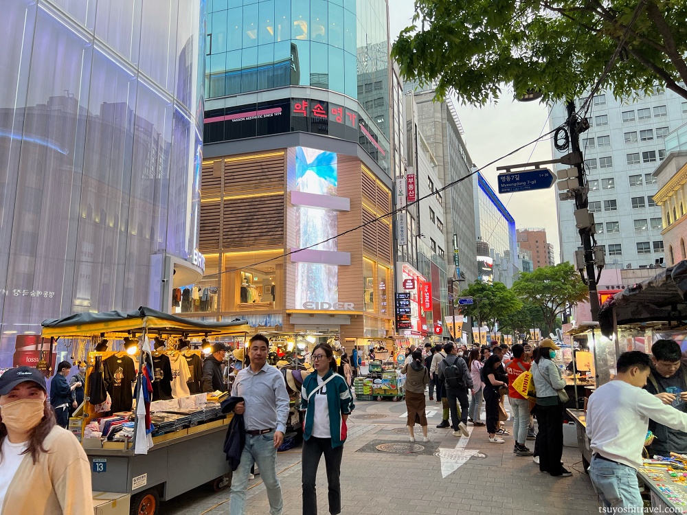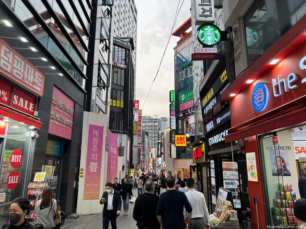 ソウル駅から地下鉄に乗り、乗り換えなしで到着したのは、ソウル最大の繁華街・明洞(ミョンドン)である。