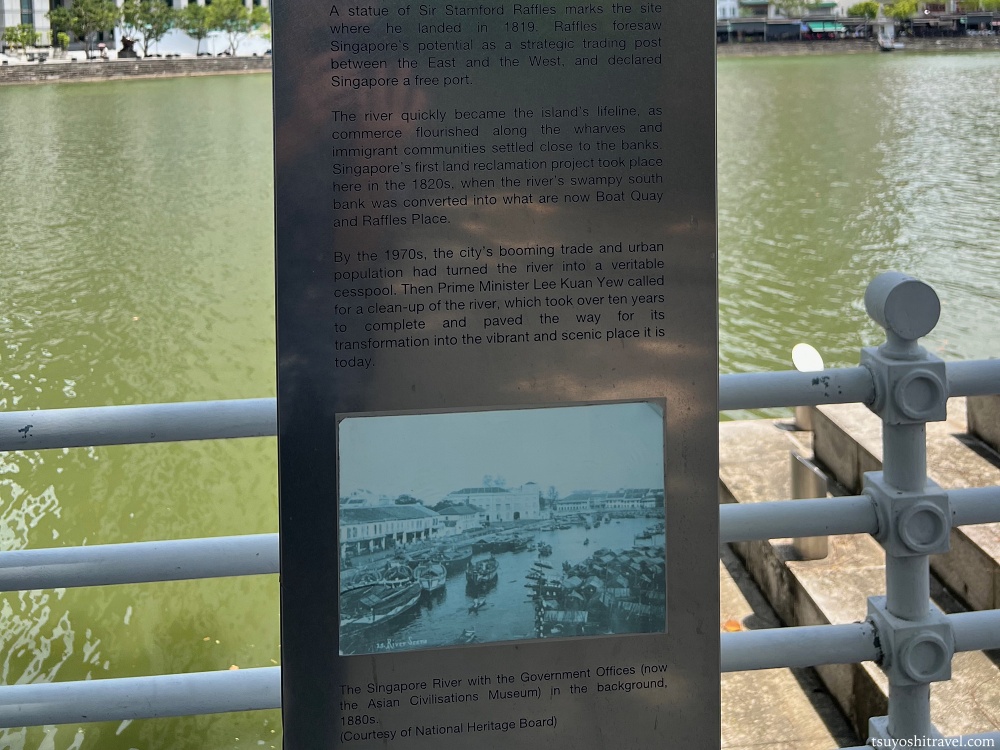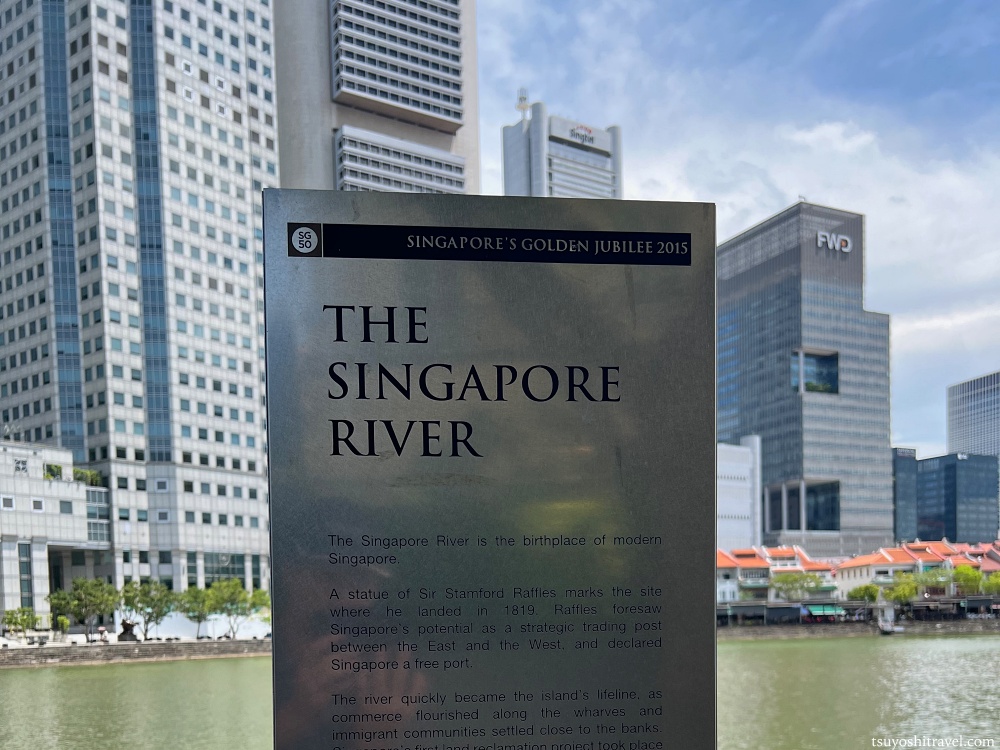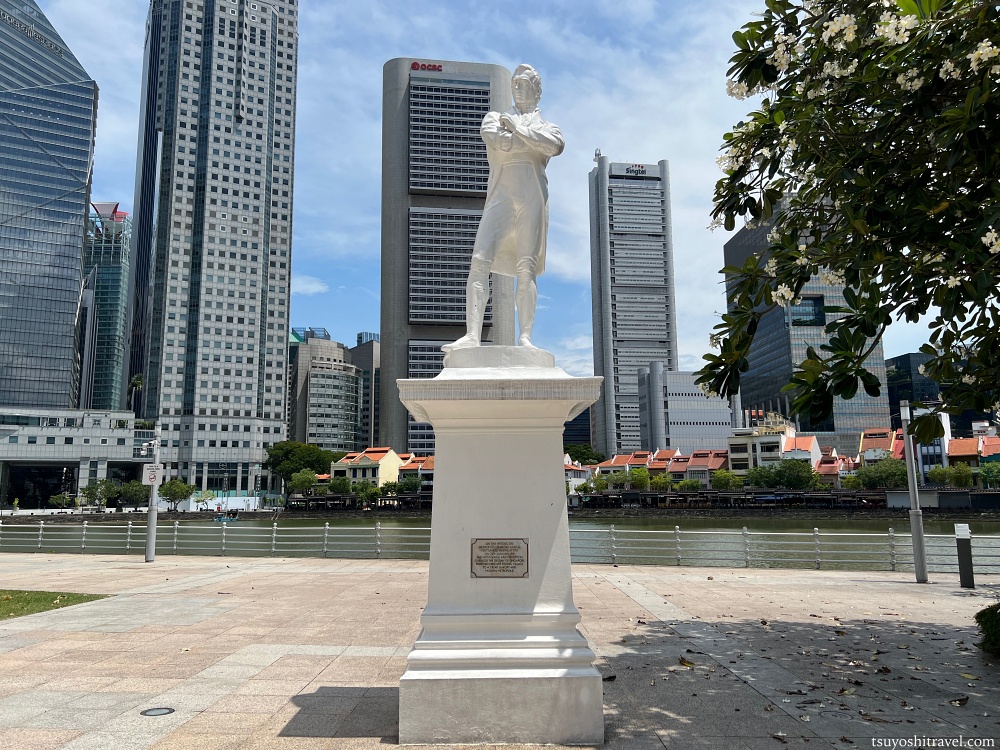 ボートキーの対岸側にはシンガポール建国の父とも言われる「トーマス・スタンフォード・ラッフルズズ(Thomas Stamford Bingley Raffles)」がシンガポールに初上陸した場所の記念碑が立っている。