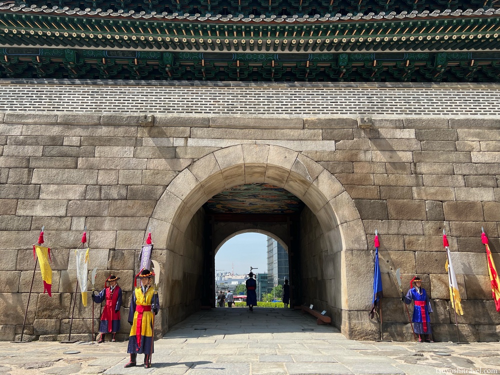 朝鮮時代の兵士が宮殿を守っていた様子が再現されていて、タイムトラベルをしているような気分になることができる。