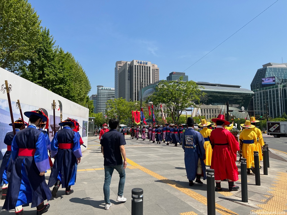 英国のバッキンガム宮殿で行われる近衛兵交代儀式に並ぶレベルの華麗な韓国伝統の宮中文化行事を1996年より再現している行事なのだ。