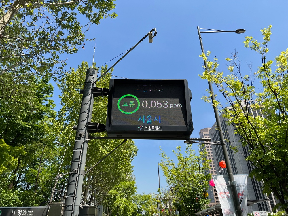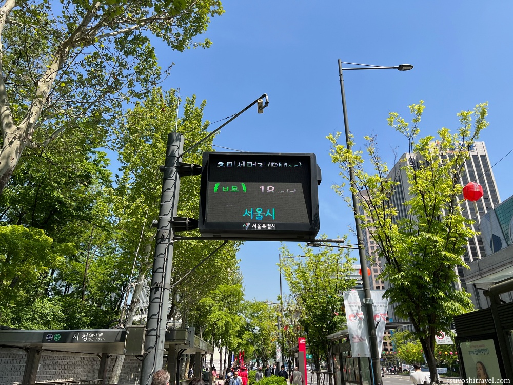徳寿宮を見て回った後は、徳寿宮よりも北側にある「光化門広場」に向かおうとしたが道路上に不思議な数値が書かれた電光掲示板を発見した。