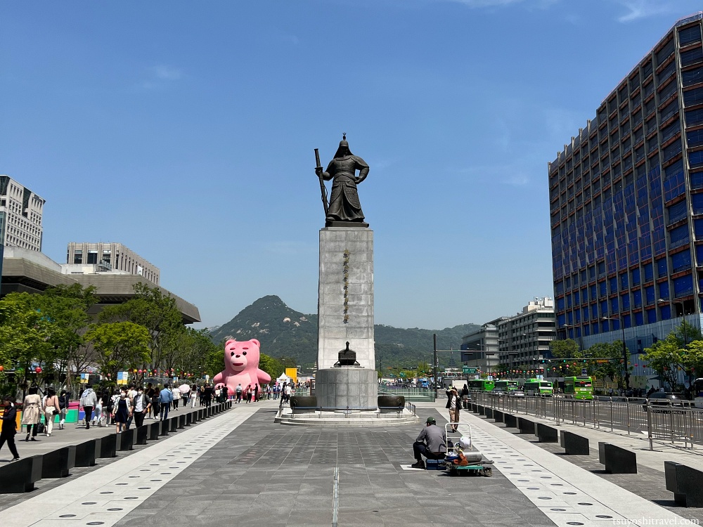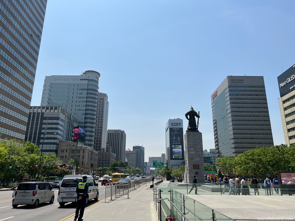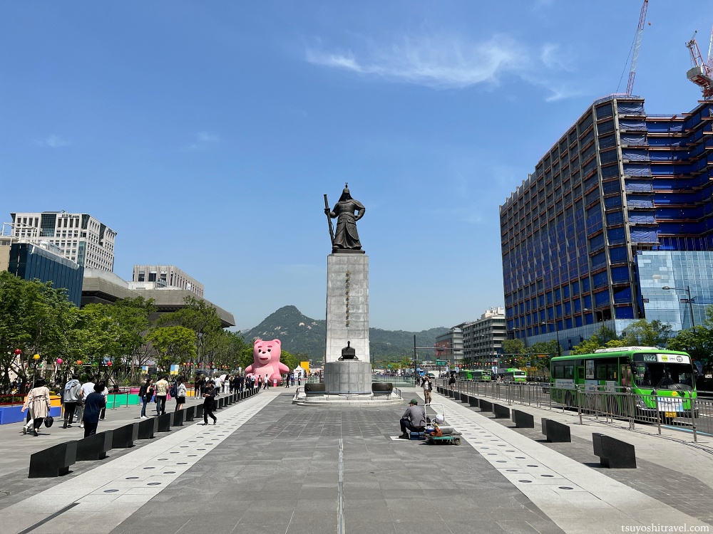 豊臣秀吉の朝鮮出兵の際に対峙した朝鮮側の英雄の李舜臣(イ・スンシン)将軍像や、ハングルを創製した世宗(セジョン)大王の銅像などが有名である。