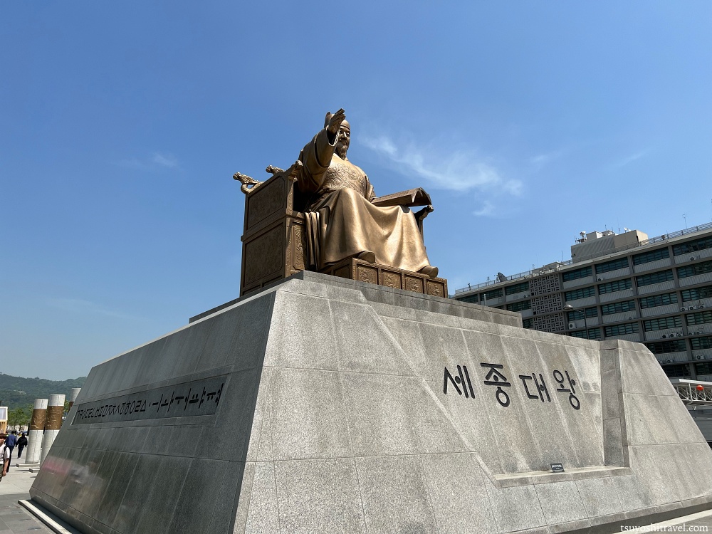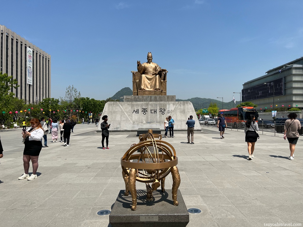 李舜臣像の北側にあるのが、ハングルを創製した朝鮮王朝屈指の名君として知られる「世宗大王像」である。