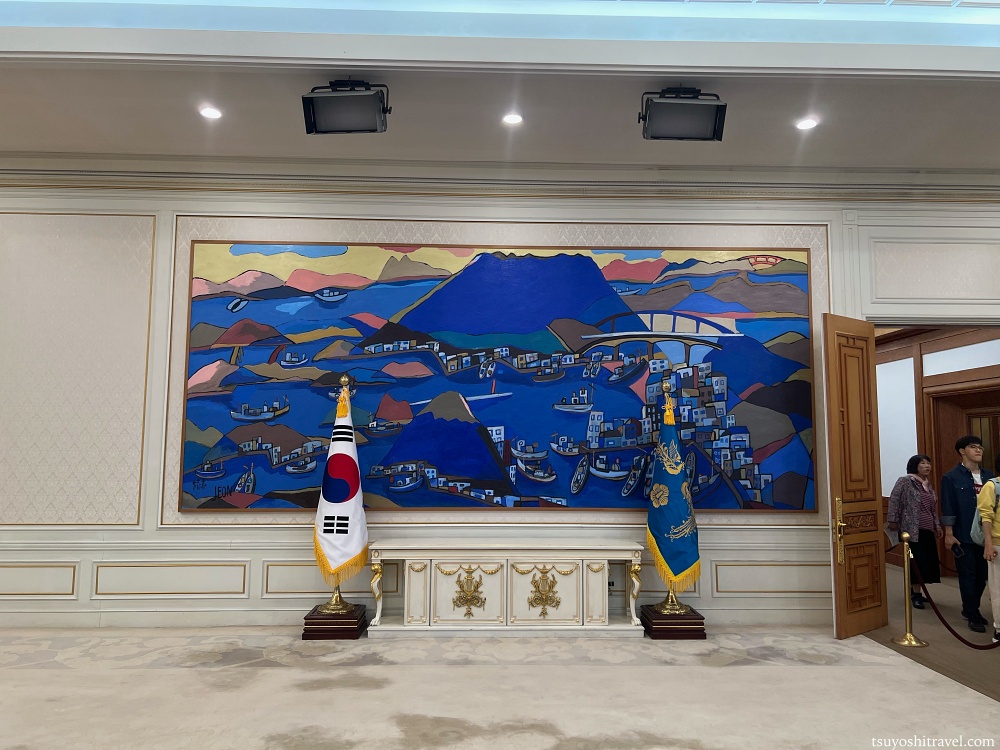 宴会スペースである仁王室には韓国南部の都市である統営(トンヨン)市の統営沖の絵が飾られていた。