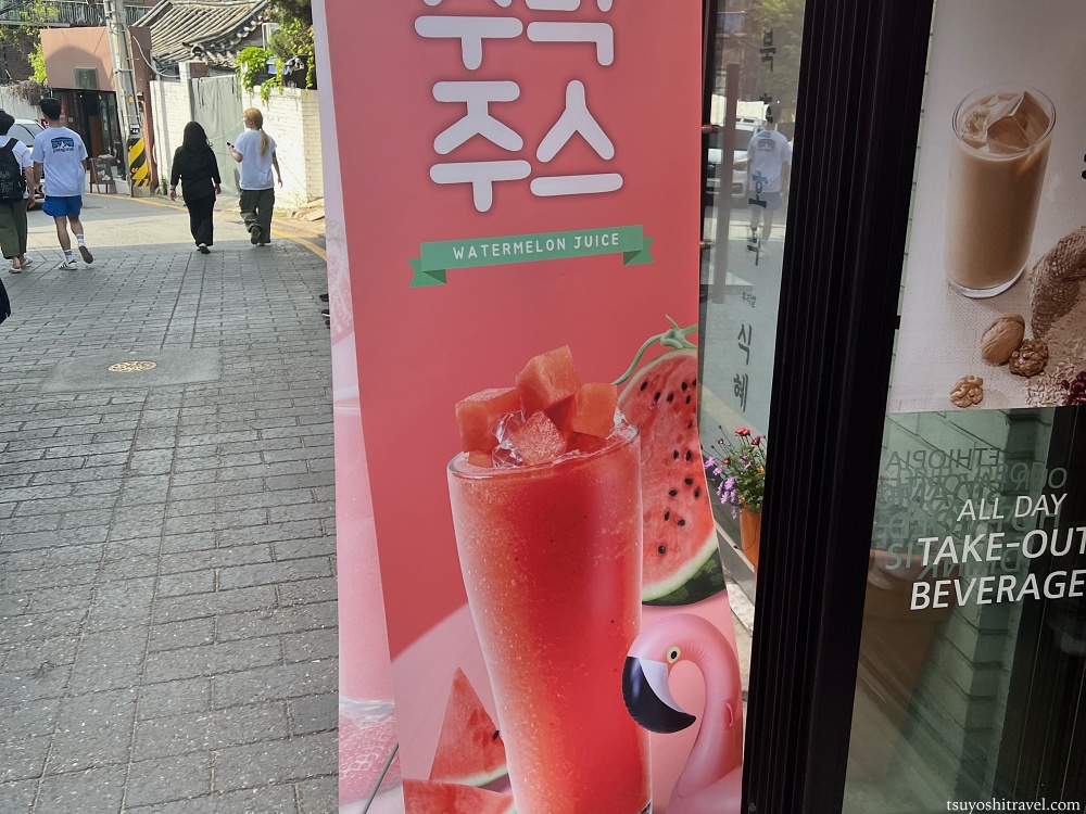 北村韓屋街の近くにあるお店で「スイカジュース」を飲む