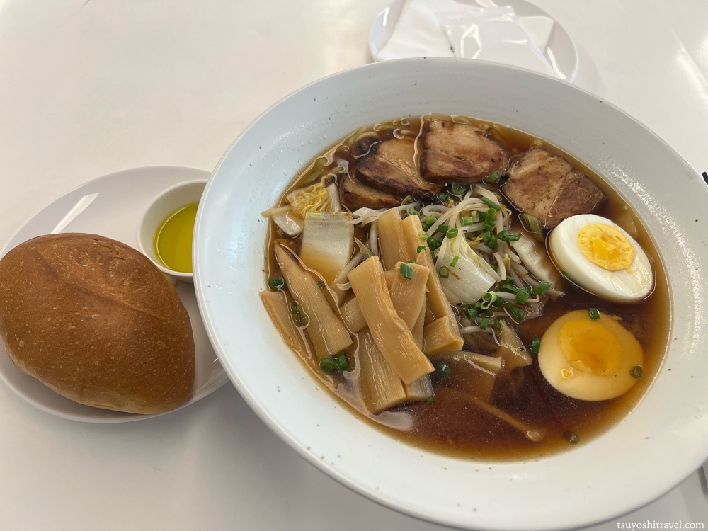 ラーメンにパンが出ていることはあまり日本ではないが、フランス料理店だからこそのメニューだろう。