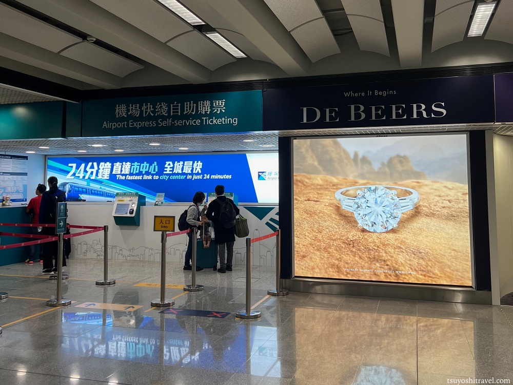 事前予約などはしていなかったので、香港国際空港到着後に徒歩で移動することができる機場(香港国際空港駅)に移動してチケットを当日購入することにした。