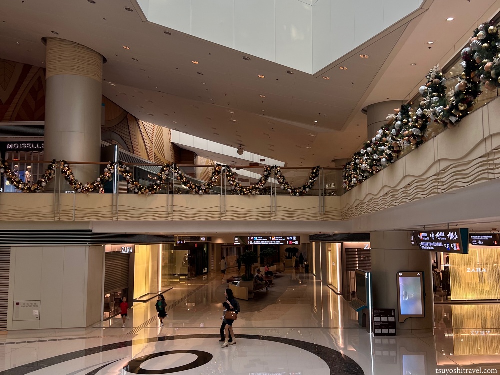 一度九龍駅の外に出てみようと歩いていたところ、九龍駅の真上には駅直結のエレメンツ(ELEMENTS)という大型のショッピングモールが併設されており、まるで迷路のような構造でどこからどこに移動して良いか分からず、館内で道に迷ってしまった。