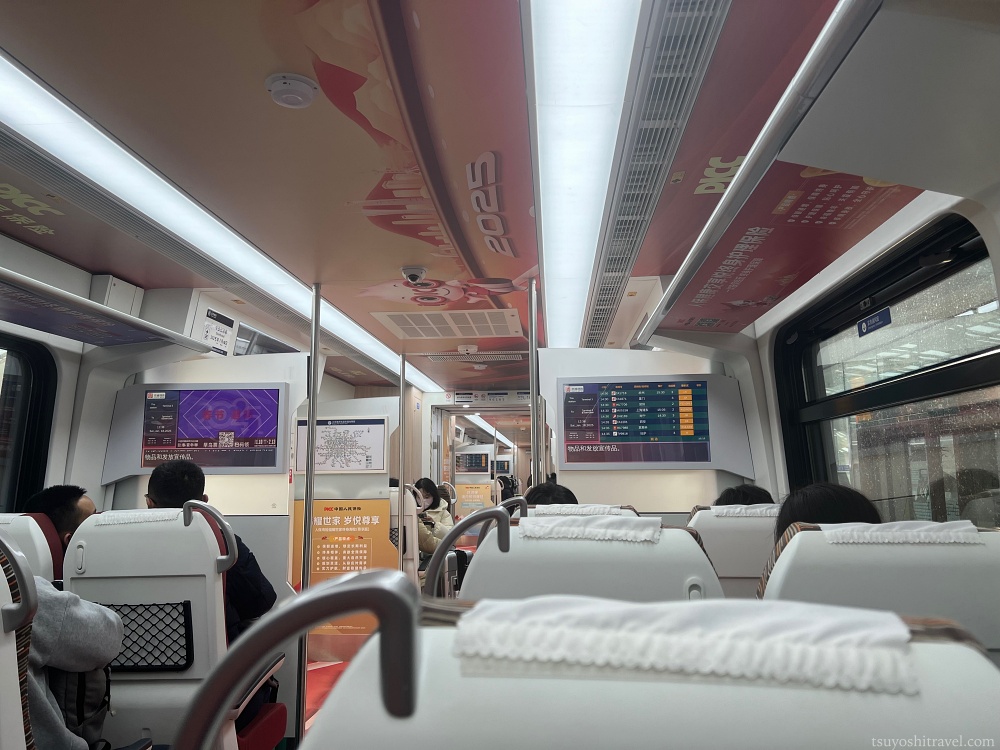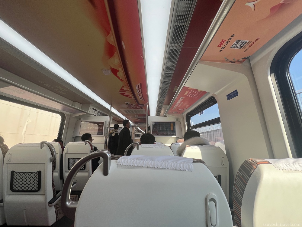 渡航前の中国のイメージと反して、空港も綺麗で、列車も最新式のリニアモーターカーを採用しており乗り心地も非常に快適だった。