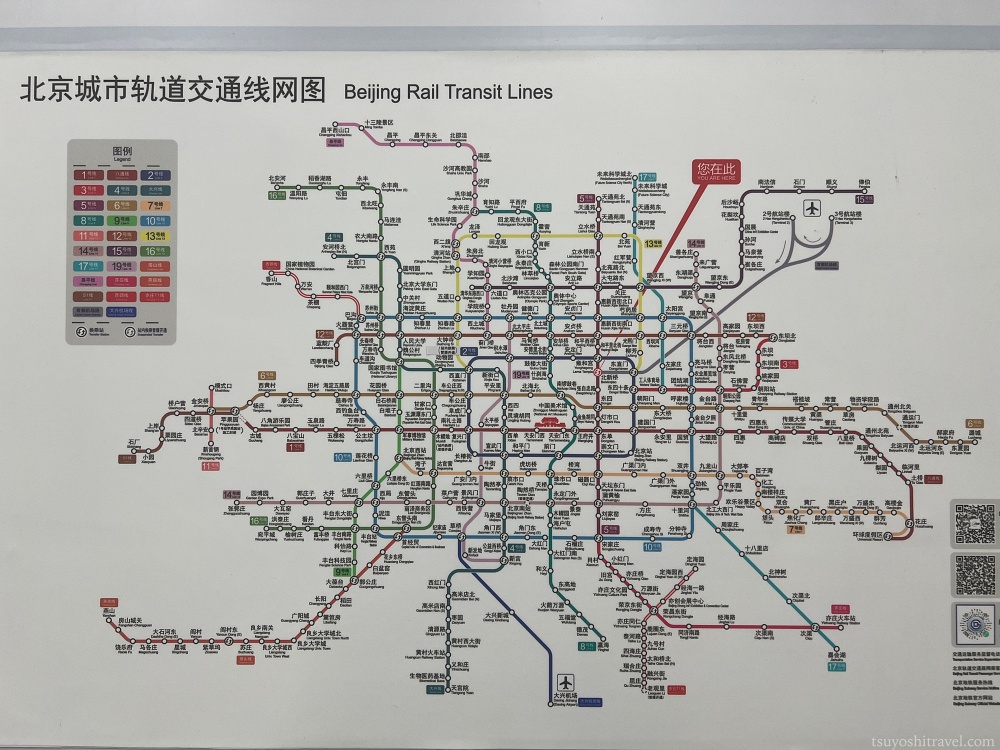 北京市内の地下鉄路線が表示されたマップがあったのだが、市内を網の目のように張り巡らした路線がびっしり表示されている。