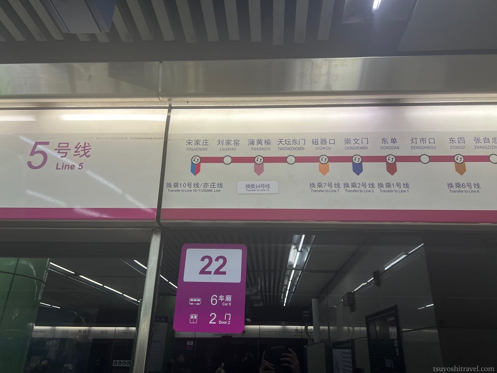 北京地下鉄5号線に乗車して、東単という駅まで移動する。