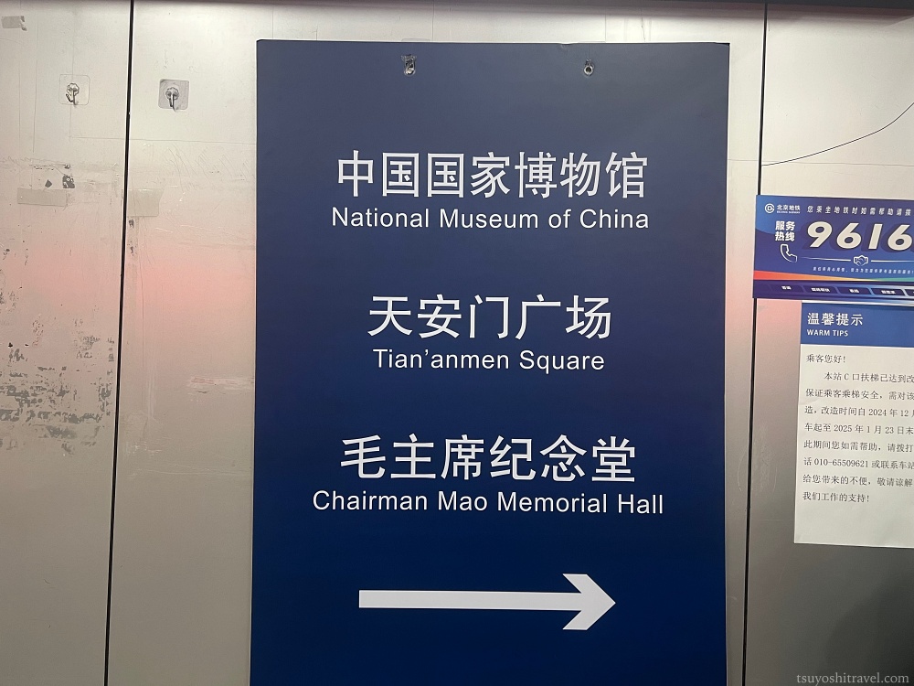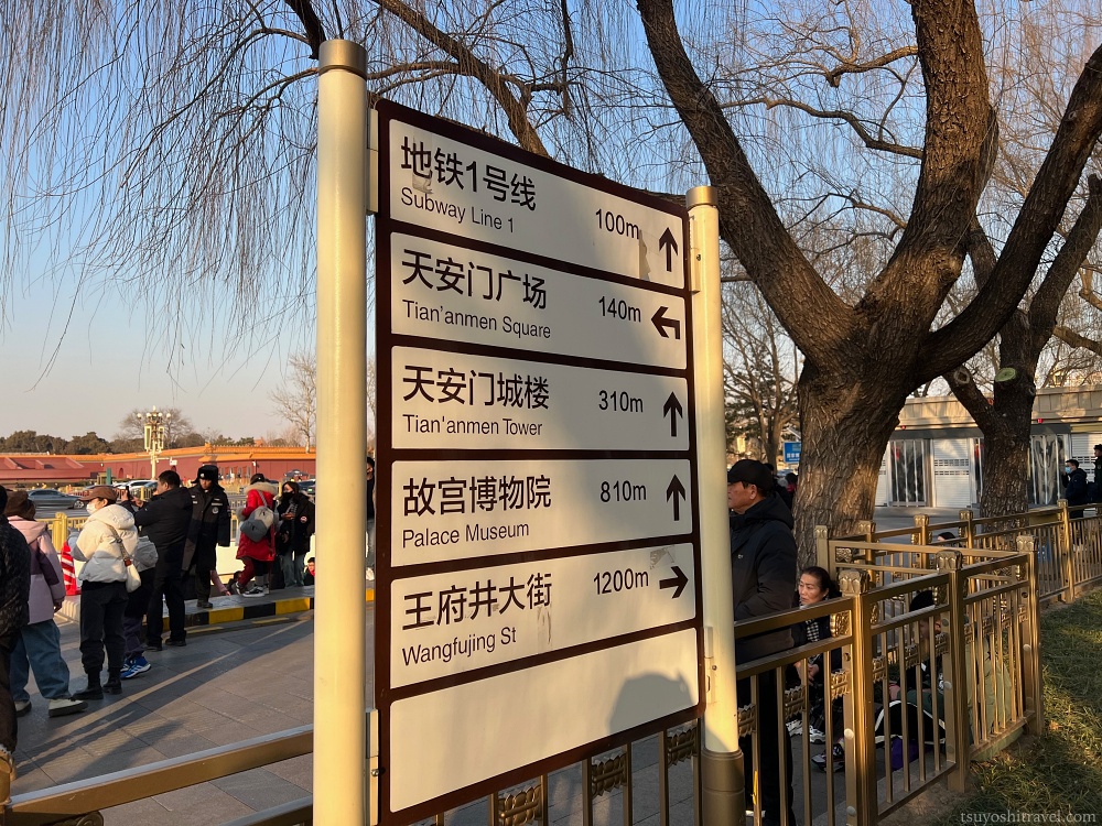 北京地下鉄5号線を南下して、東単という駅でもう一度乗り換えをして北京地下鉄1号線で天安門東という駅まで移動すれば、天安門から最も近いゲートまで移動することができる。