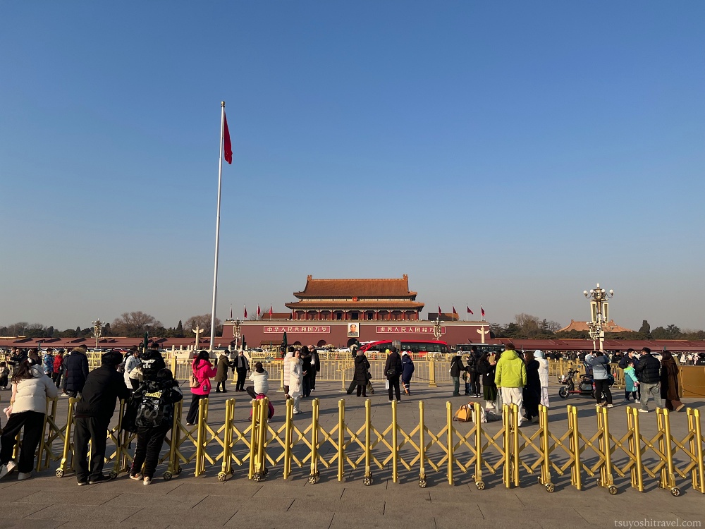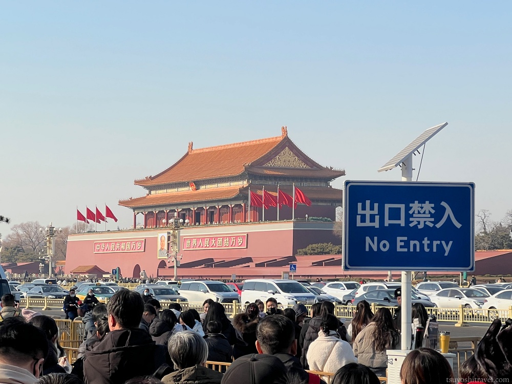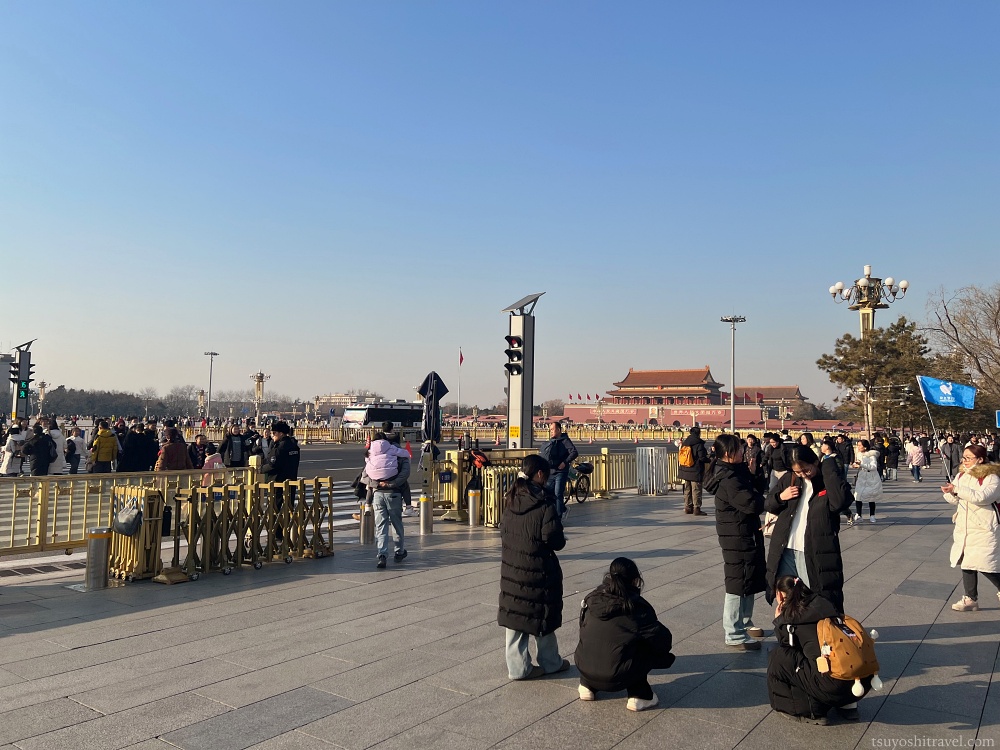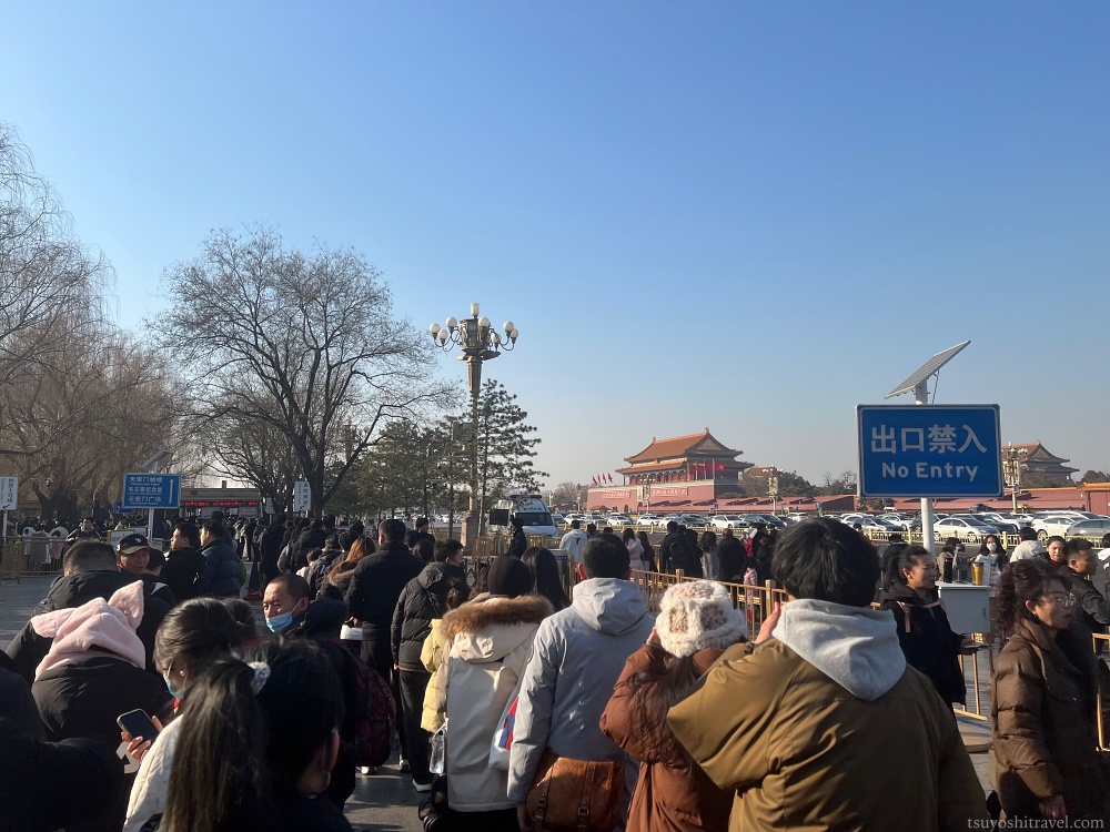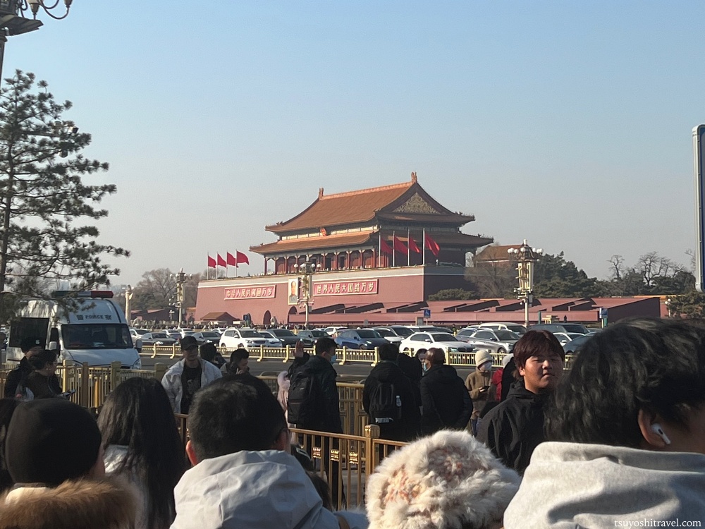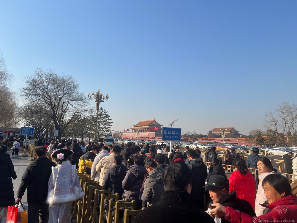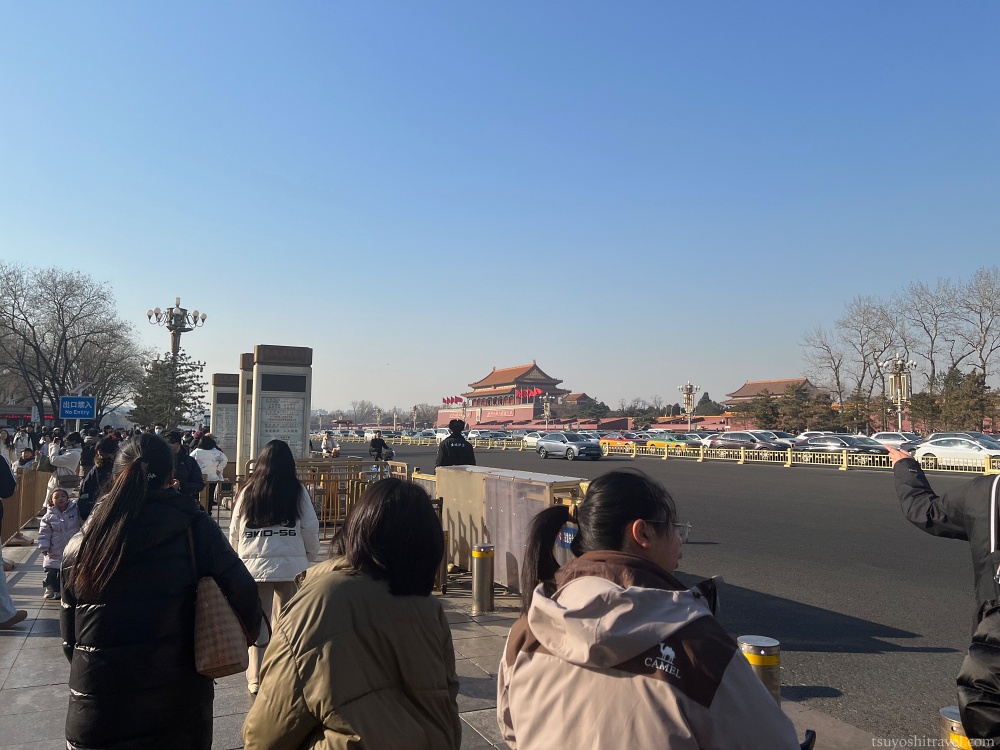 トランジットの時間が刻々と迫る中、目の前に天安門広場がありつつも待機列が進まず、すぐには入ることができないもどかしさがあった。