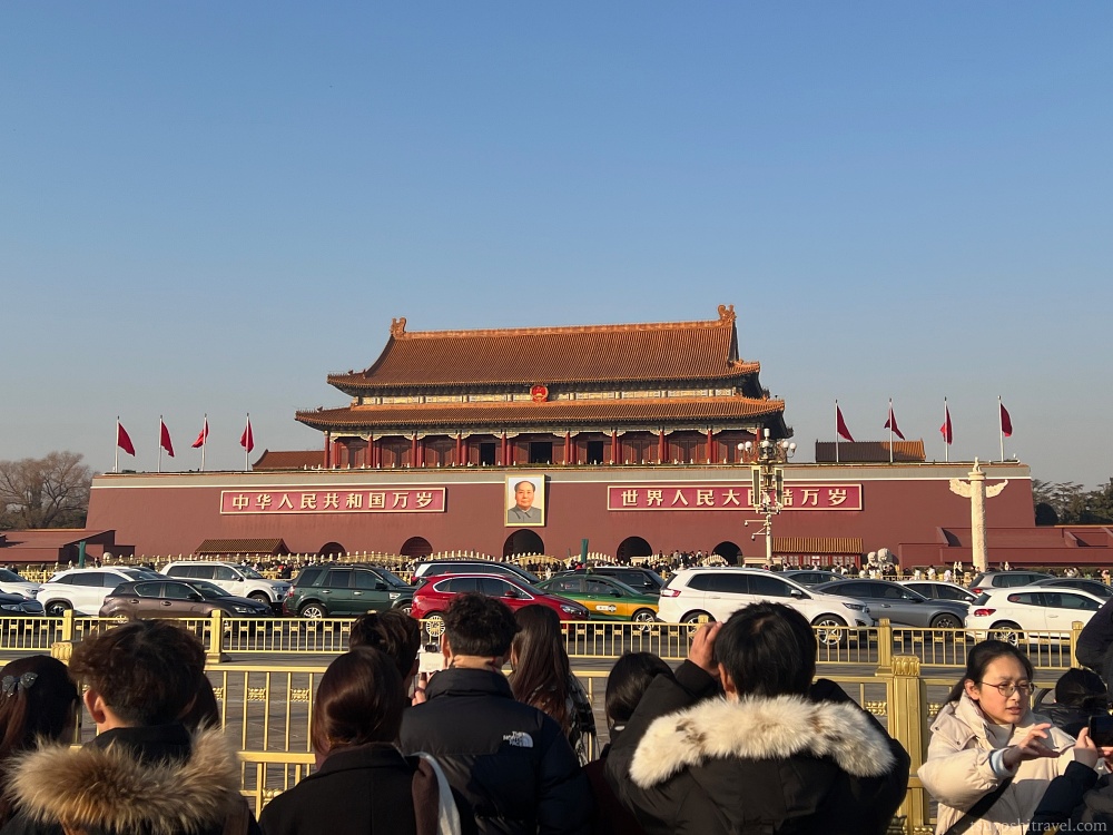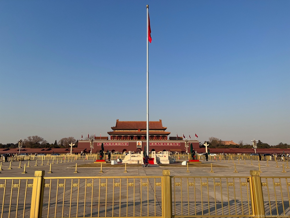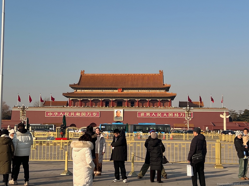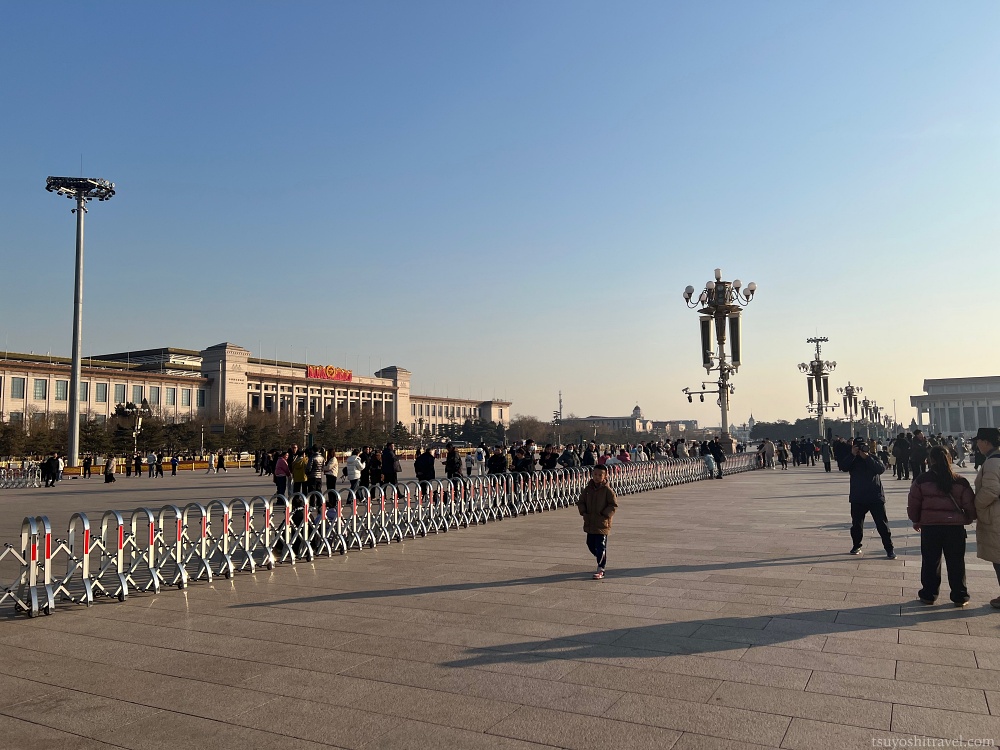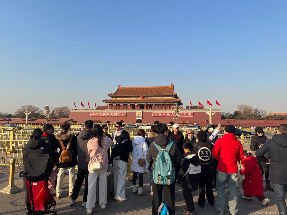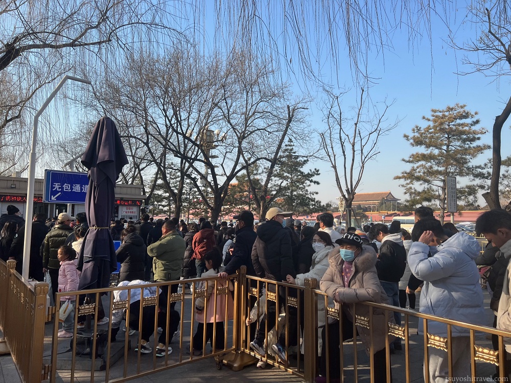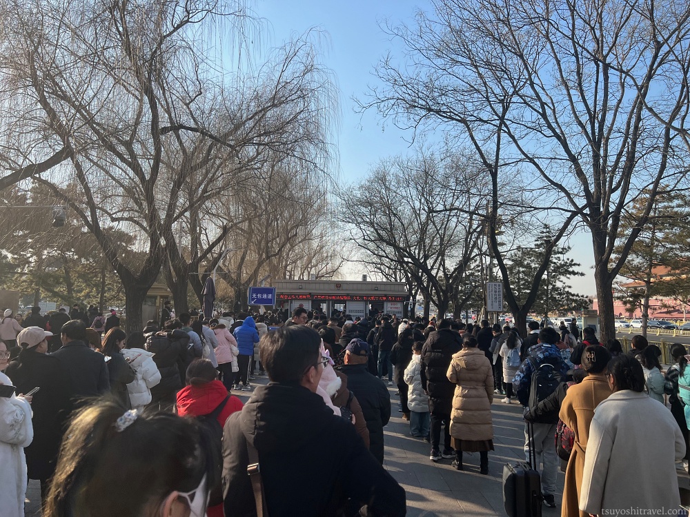 トランジットの時間が刻々と迫る中、目の前に天安門広場がありつつも待機列が進まず、すぐには入ることができないもどかしさがあった。