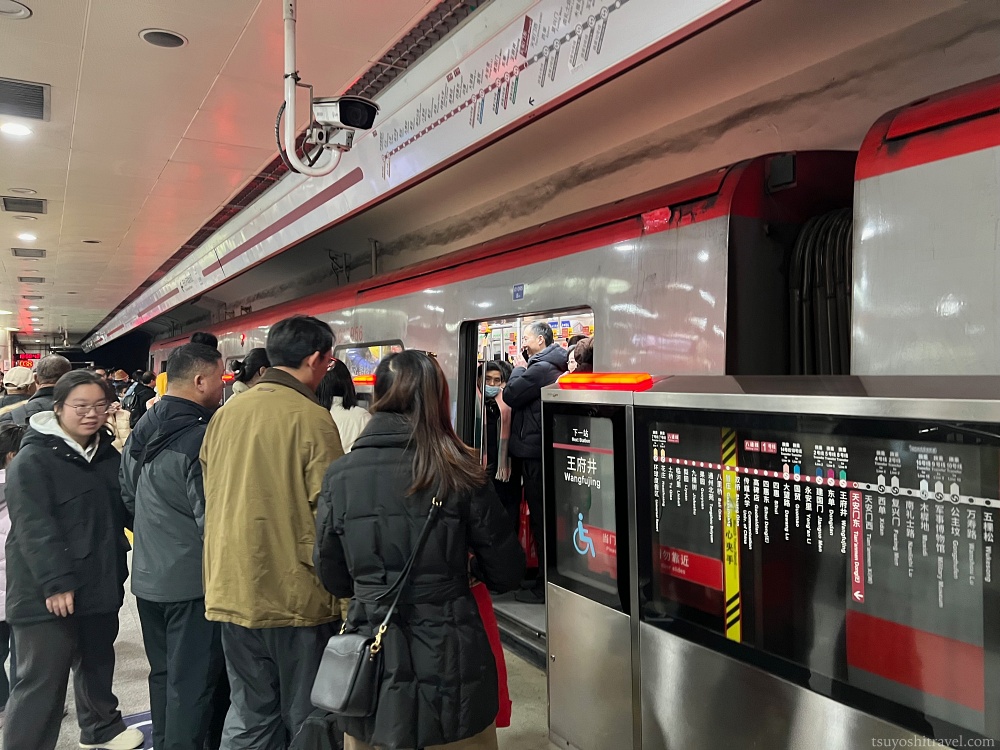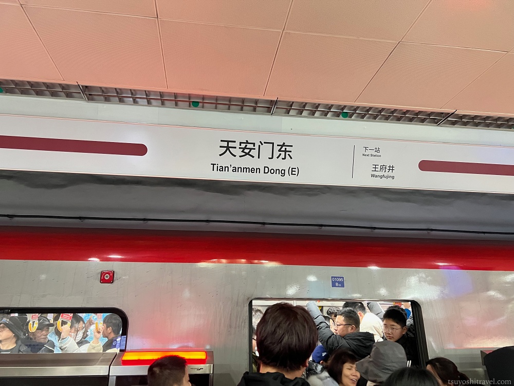 天安門東駅からの地下鉄1号線は日本の満員電車と同様に大変な混雑だった。