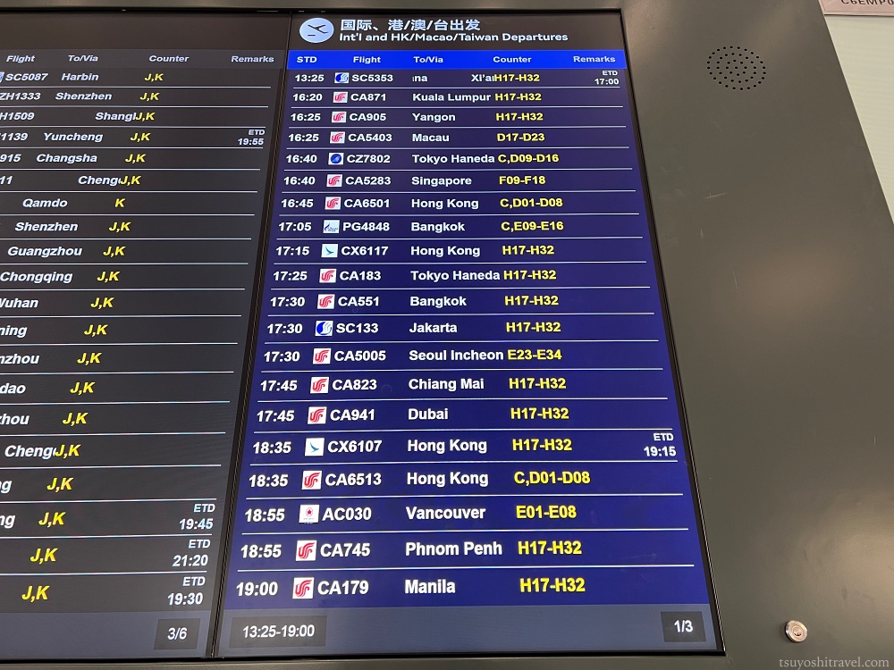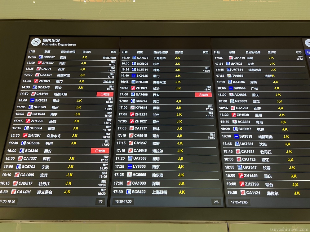 そのような状況でもあったので興味本位で中国の国内線のフライトボードのところに行き眺めてみた。