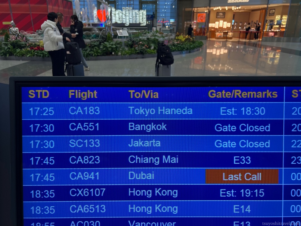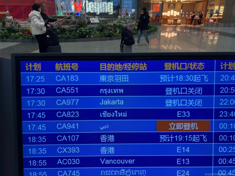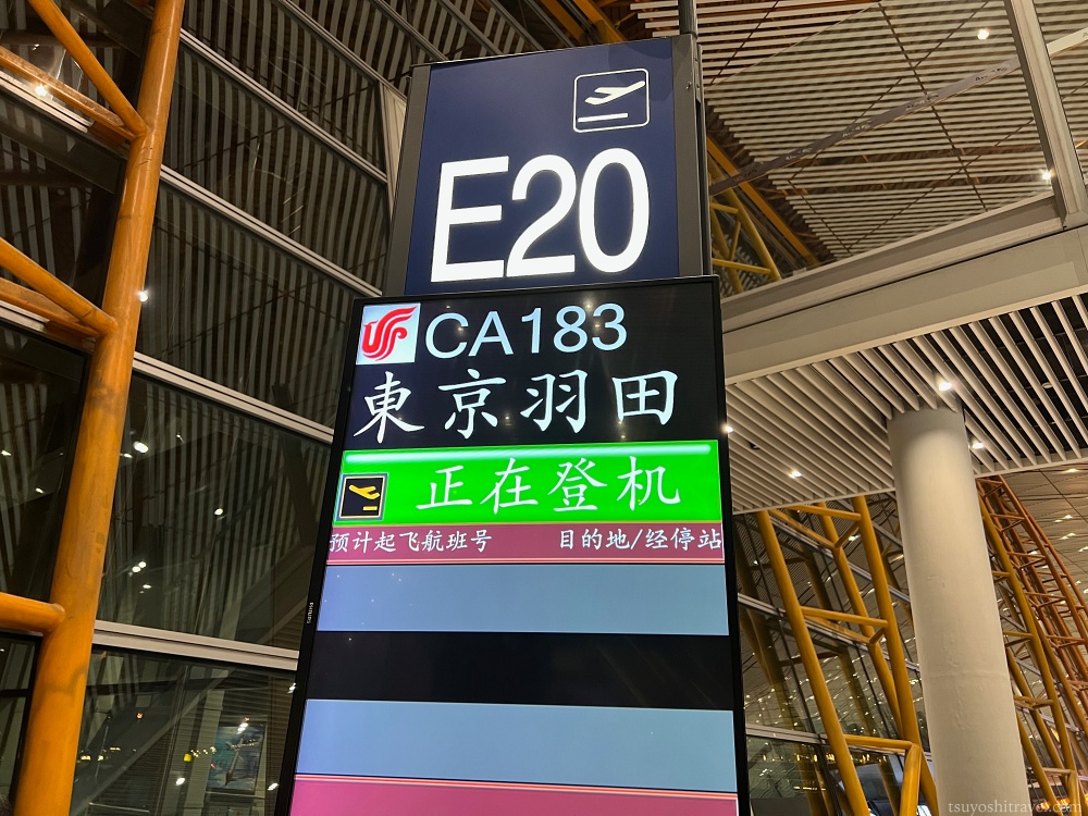 無事に時間内に北京首都国際空港に戻ってくることができたので、これから日本に向けての帰国フライトに搭乗することになる。