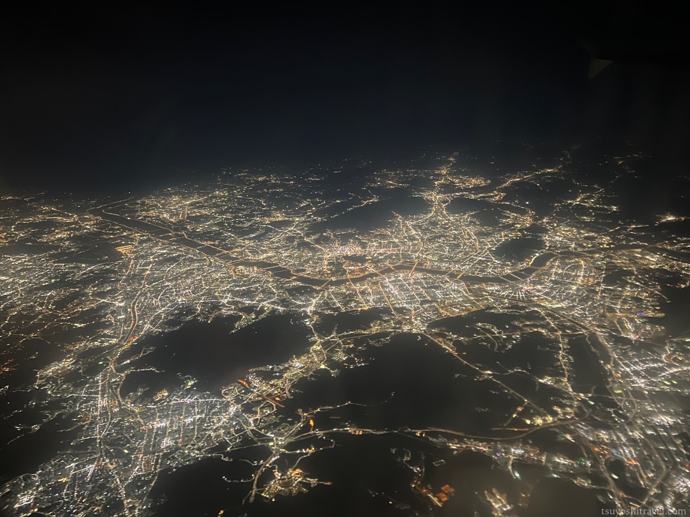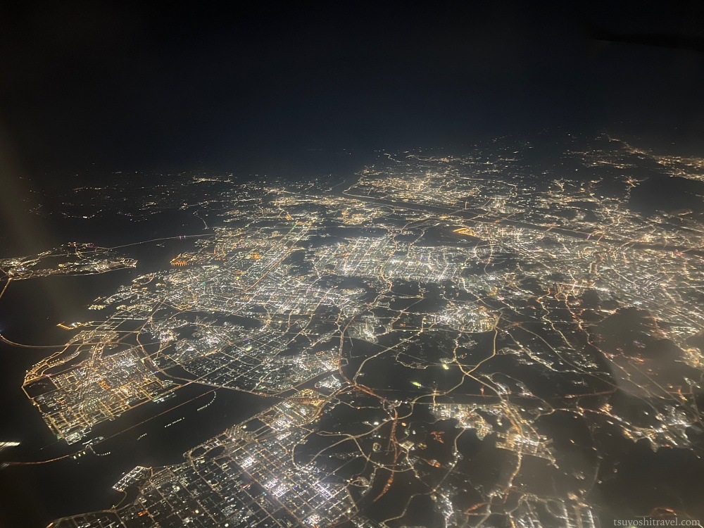 程なくすると陸地の明かりが見えてきたのだが、どの都市なのだろうか?
