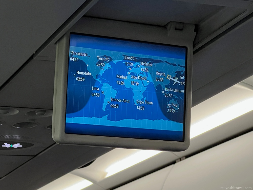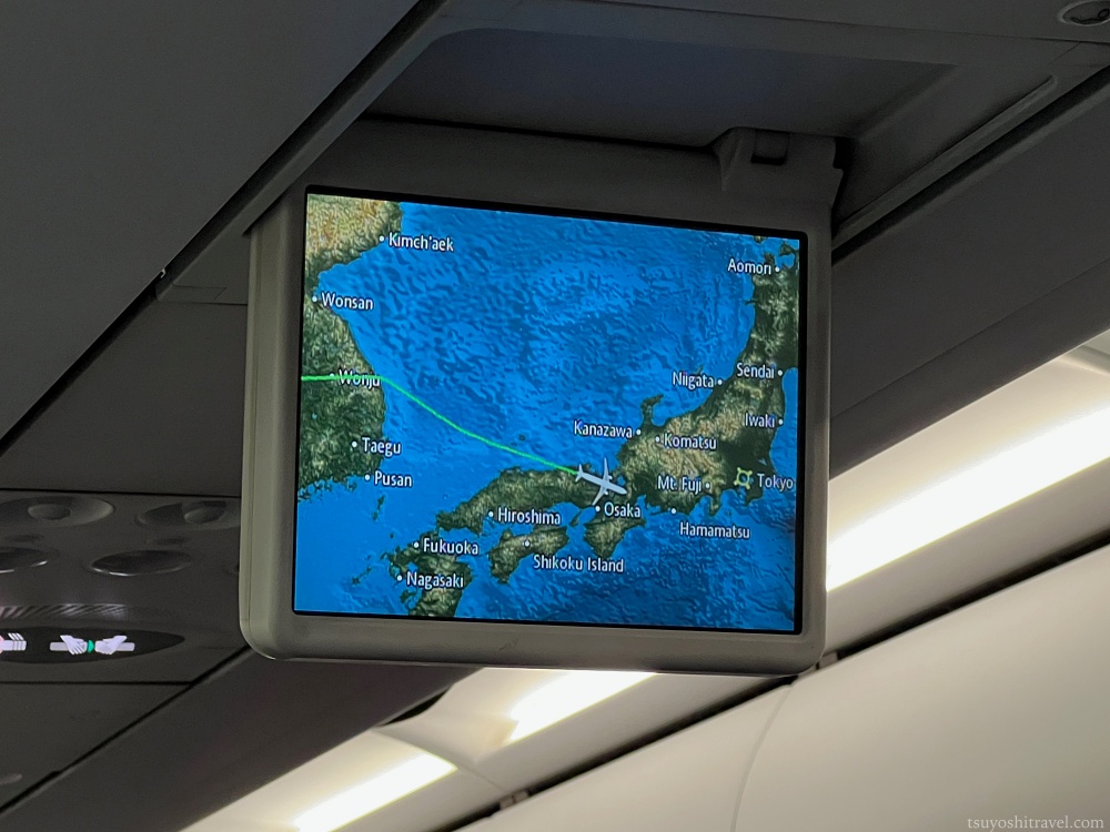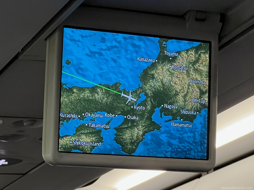 外の景色はほとんど真っ暗で見えないものの、飛行機は琵琶湖の上空に差し掛かってきている。