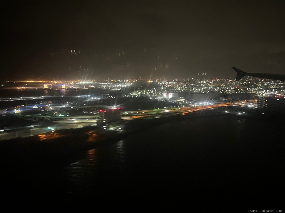 定刻よりは1時間10分ほど遅れはしたものの22:43に、無事に羽田空港に着陸した。