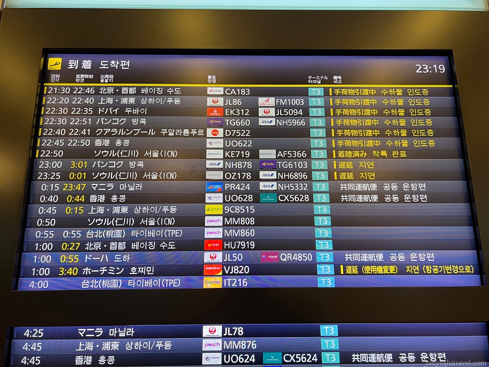 無事に手荷物を受け取ることができて、制限エリア外へと出てくることができたのは23:19だった。