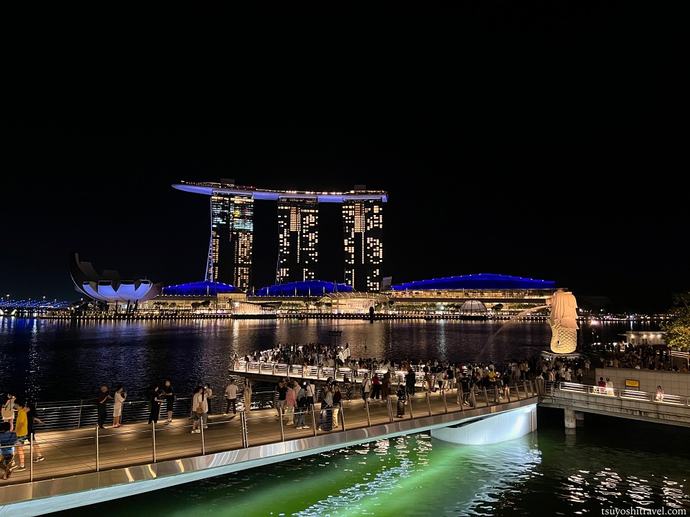 昼間の景色も十分好きなのだが、夜のマーライオン公園から見るマリーナベイサンズ(Marina Bay Sands)の光景は圧倒的な雰囲気である。