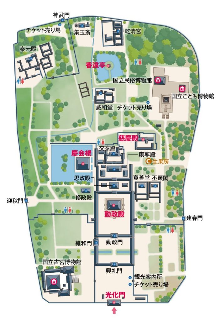 勤政殿の北側にはさらに多くの宮殿があるが、観光客は勤政殿まで見て帰る人も多く、ここまでくると人が少ないのでゆっくり見ることができる。