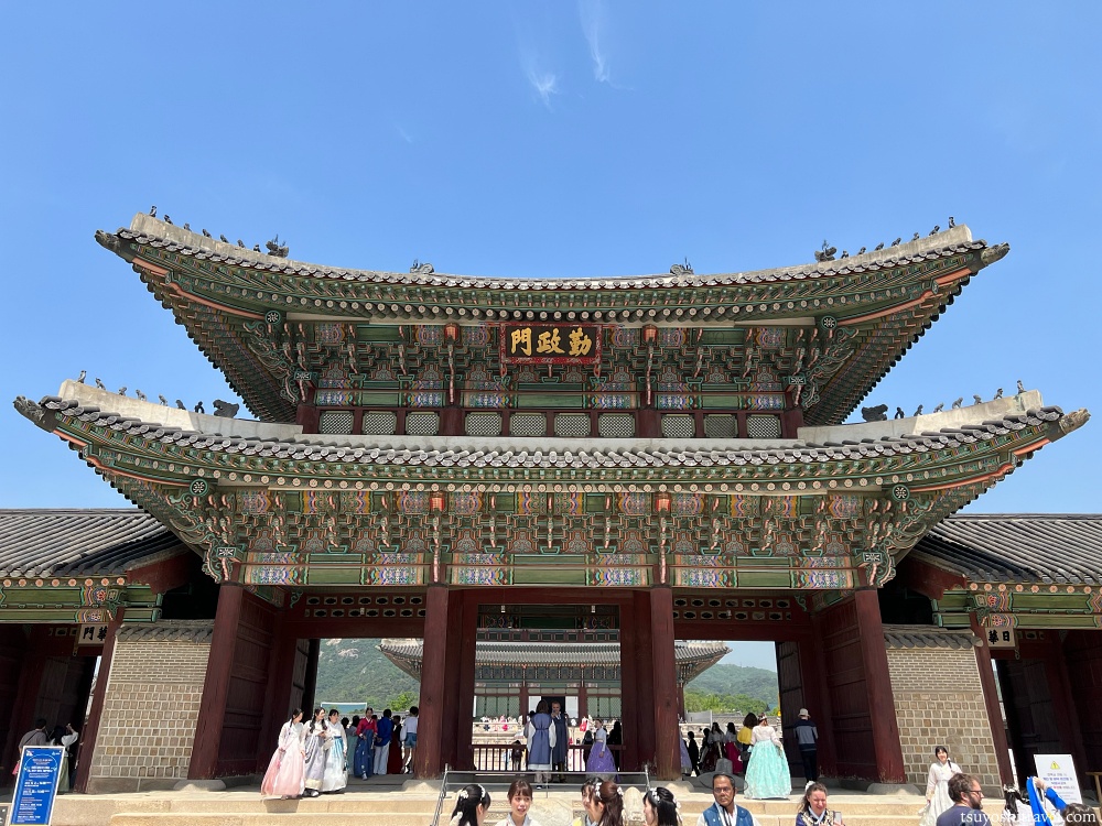 興礼門をくぐると見えてくるのが、3つ目の門である景福宮の正殿に続く勤政門(クンジョンムン)ある。