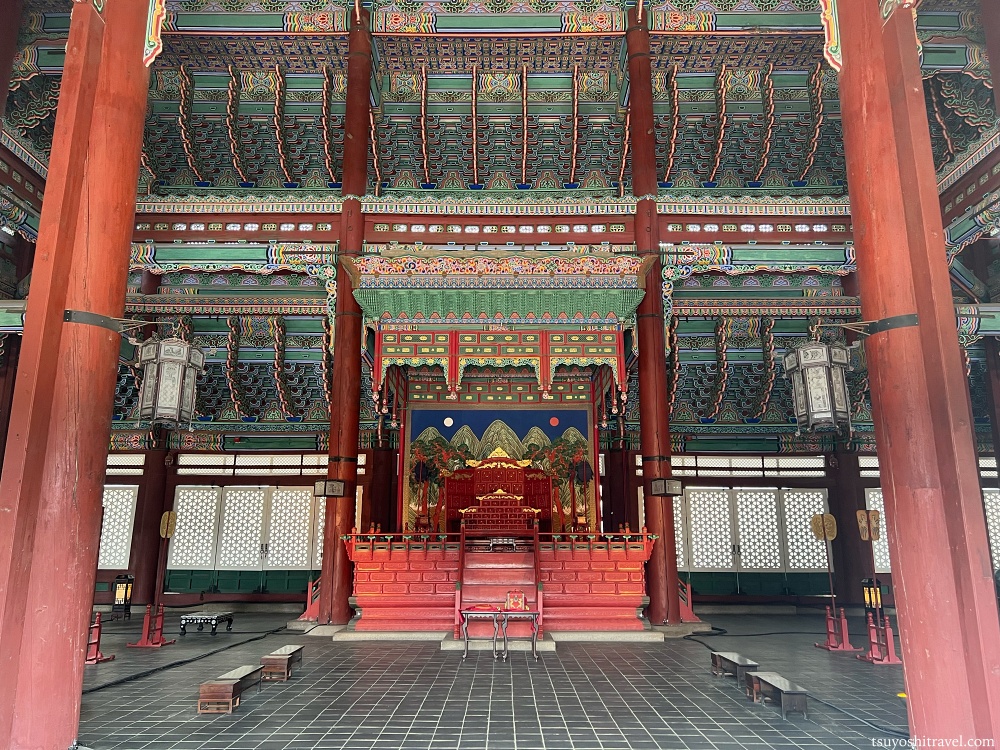 3つ目の門である勤政門をくぐるといよいよ景福宮の正殿である勤政殿(クンチョンジョン)が見えてきた。