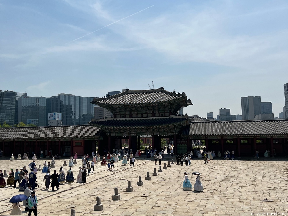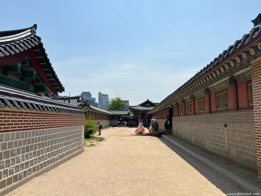 宮殿と高層ビル群のコントラストが朝鮮王朝時代と現代との狭間にタイムスリップをしたような気分にさせてくれる。