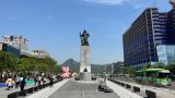 今回見ることはできなかったが、光化門前では火曜日以外の毎日10:00と14:00に「守門将交代儀式」が行われているという。