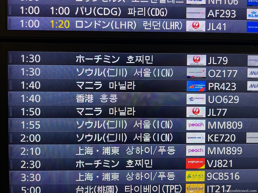 深夜の皆が寝静まった時間帯にもこうやって海外に向けていくつものフライトがあるのは航空会社や空港関係者の仕事あってのことなので、毎回搭乗時には感謝するようにしている。