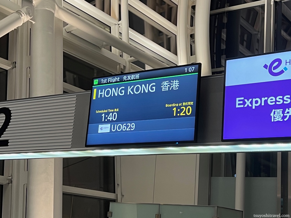 今回は羽田空港T3 1:40発香港エクスプレス航空UO629便に搭乗する。