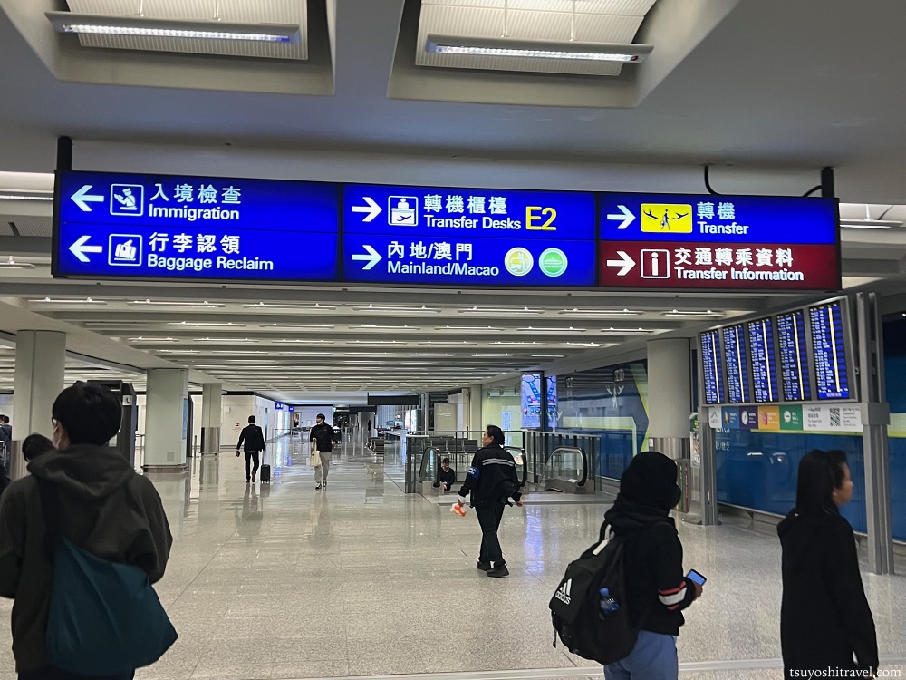 ターミナル内を徒歩で移動している最中に、看板を見ると英語と中国語が併記されており、やっと香港に来たんだなという実感が湧く。