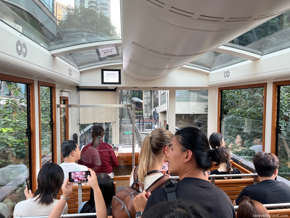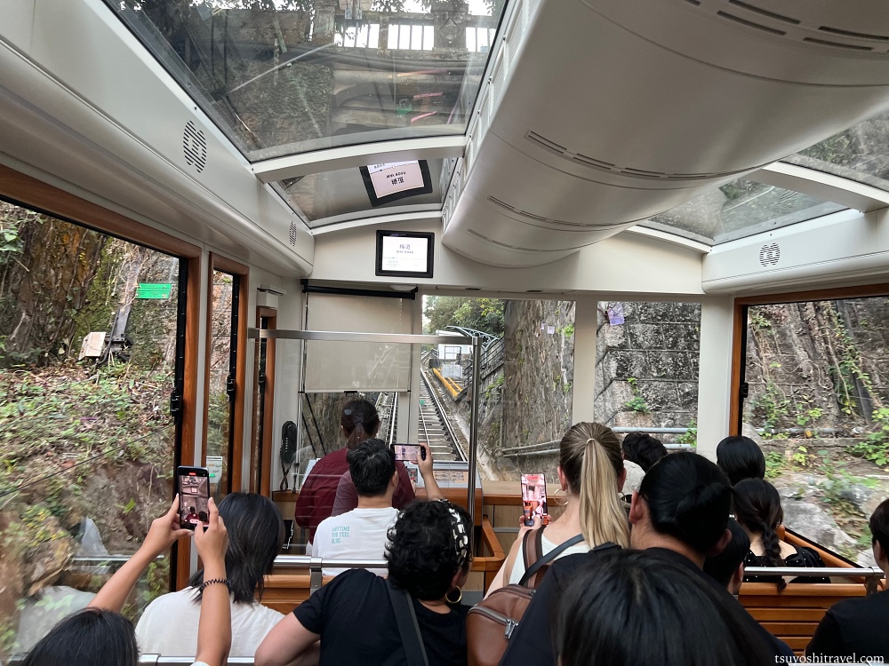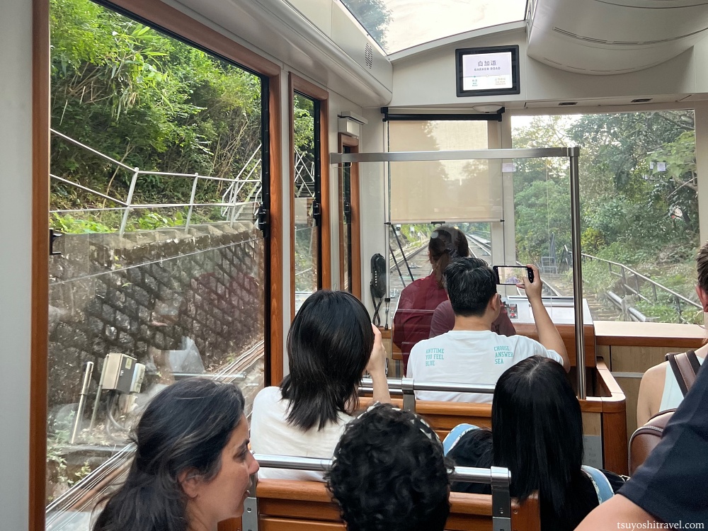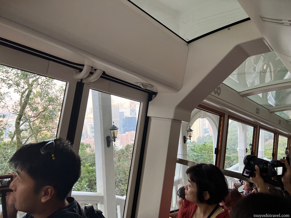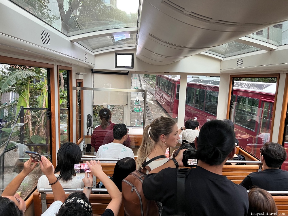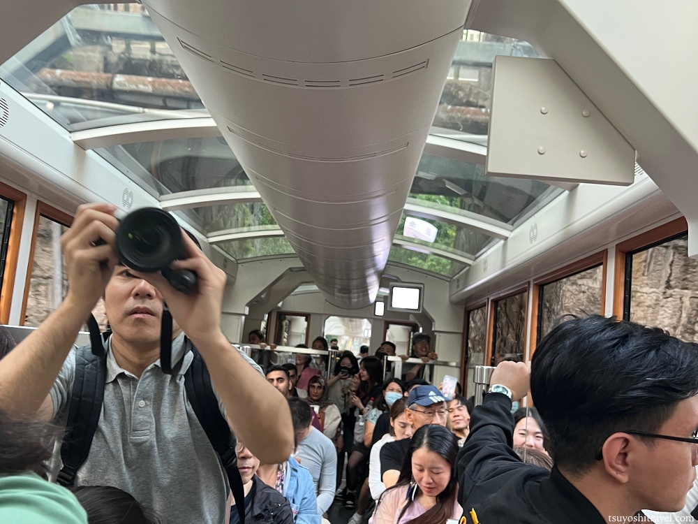 景色を見るために右側に座ると良い!という事前情報を持っている観光客も多くおり、右側の席は一瞬で埋まりやすいので、確保するには素早く乗車時にピーク・トラムに乗り込む必要があると思う。