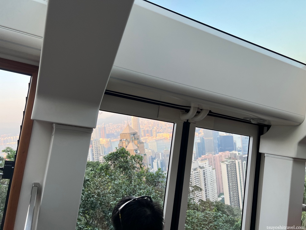 今回私は右側の座席には座ることができなかったが、立ち乗りだったのでできるだけ右側の窓際に移動し、やっとの思いで香港市街を窓から望むことができた