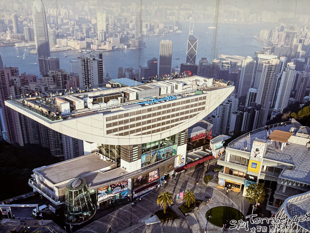 ピークタワーは中華鍋のような特徴的な形をしており、下層階にはレストランやショッピングセンターなどがあり、最上階にあたる海抜428mの展望台「スカイテラス428(Sky Terrace 428 , 摩天台428)」こそが、香港100万ドルの絶景を望むことができる場所となっている。