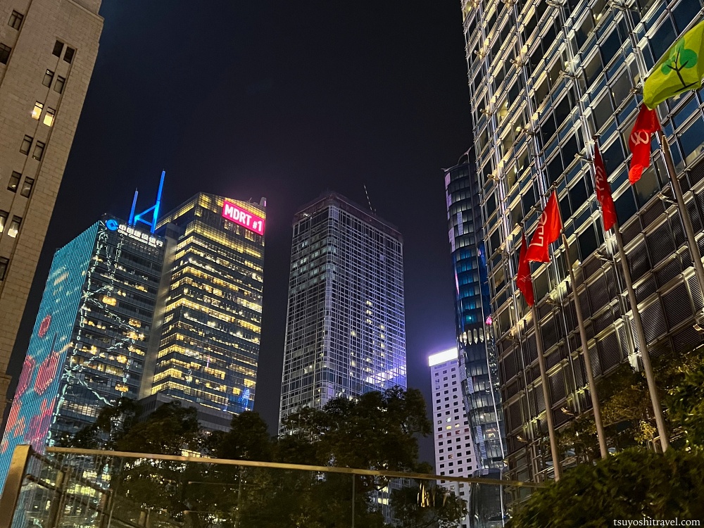 シンフォニーオブライツの開催時間に間に合わせるためにかなりの急足でMTR中環駅まで歩いたのだが、途中の金融街の高層ビル群が綺麗に輝いていており、地上での景色も十分に綺麗だった。