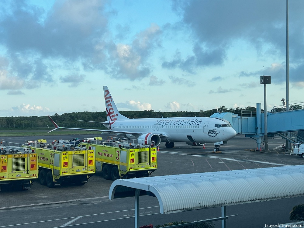 日本時間の5:00過ぎ(オーストラリア時間の6:00過ぎ)には「ケアンズ国際空港(Cairns International Airport , CNS)」に無事着陸して、入国審査へと向かっていく。