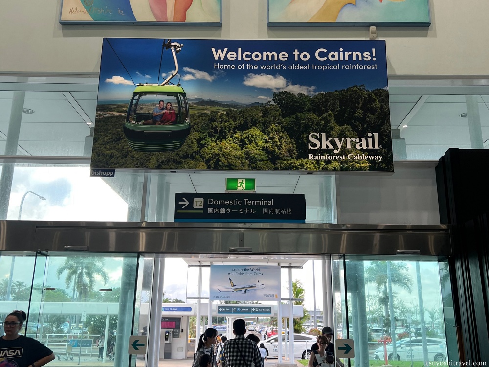 空港内には、「ケアンズへようこそ!」という看板が掲げられている。