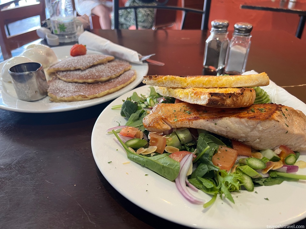 カフェのパンケーキにも関わらず、一人では食べきれないほどの大きさの料理が届いた。