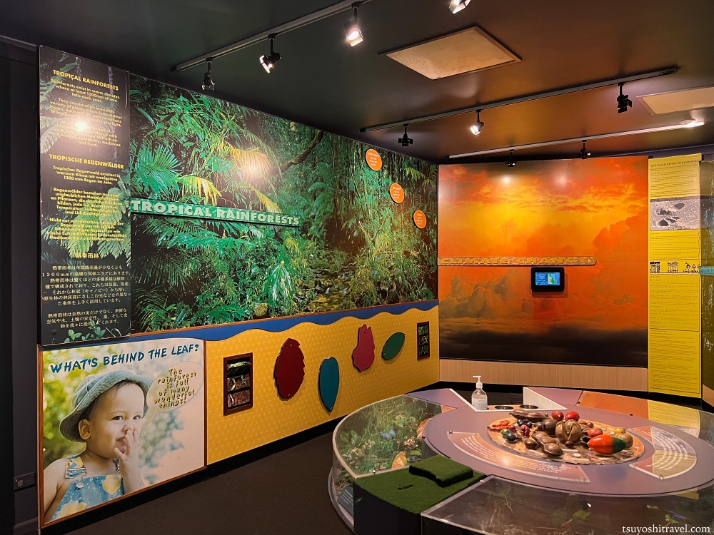 熱帯雨林に関する様々な情報や歴史などを写真付きの解説ボードやインターネットを利用しながら学べる環境が整っている。