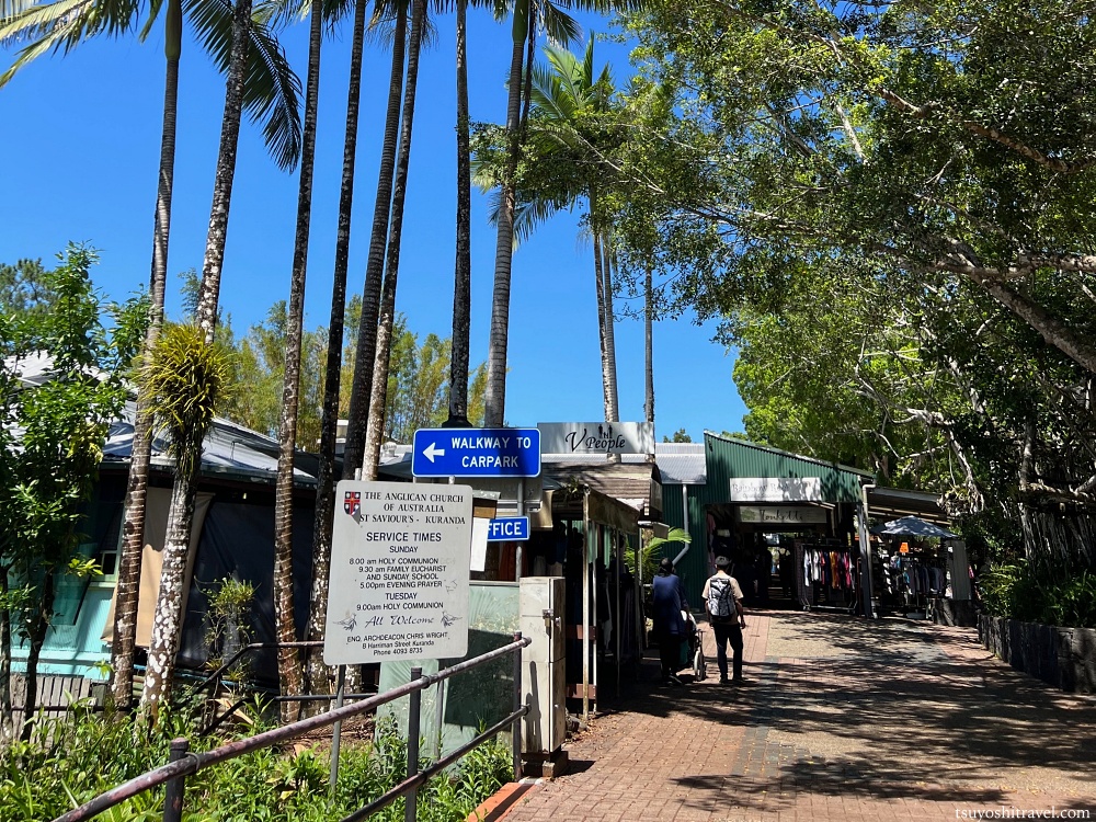 その後も徒歩で移動をしていると、キュランダ村の街並みがようやく見えてきた。