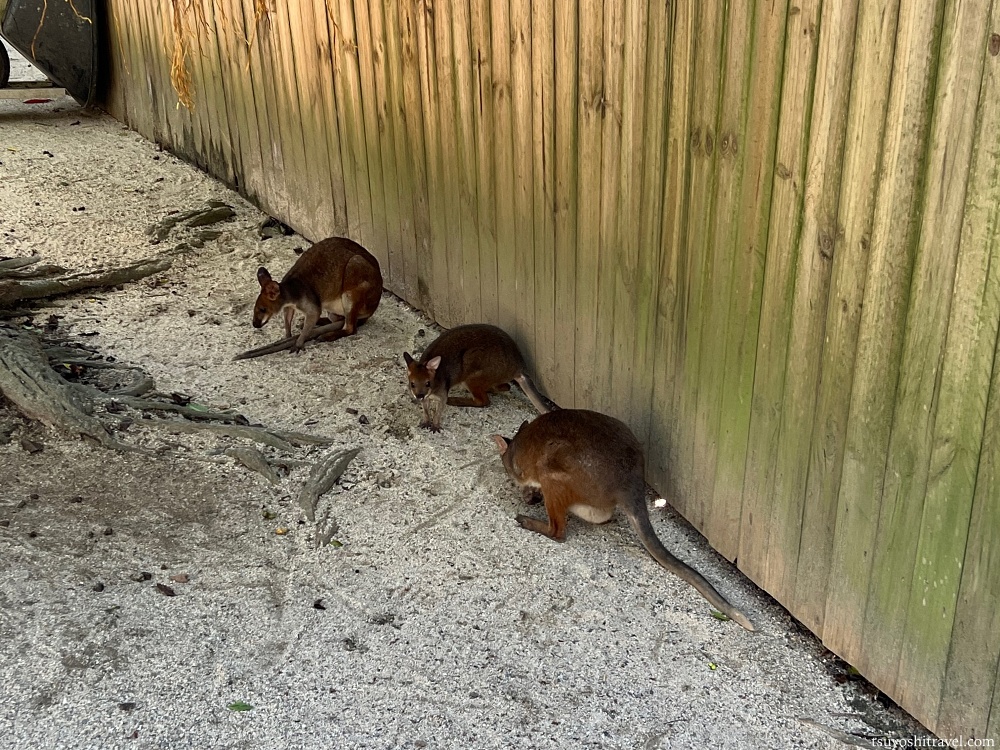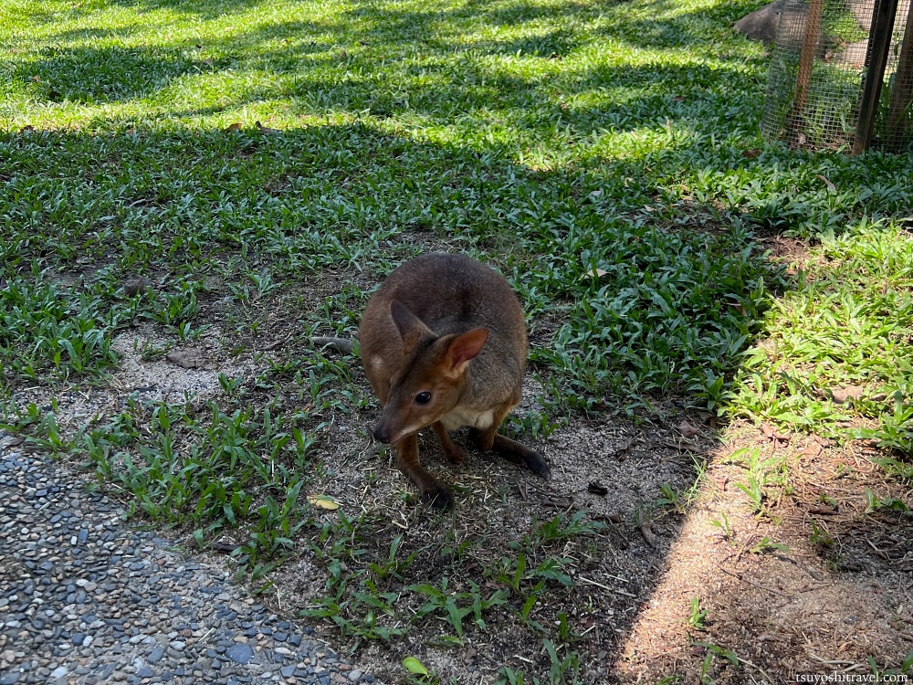 こちらの動物はワラビーで、カンガルーよりも体の大きさがすこし小さい。