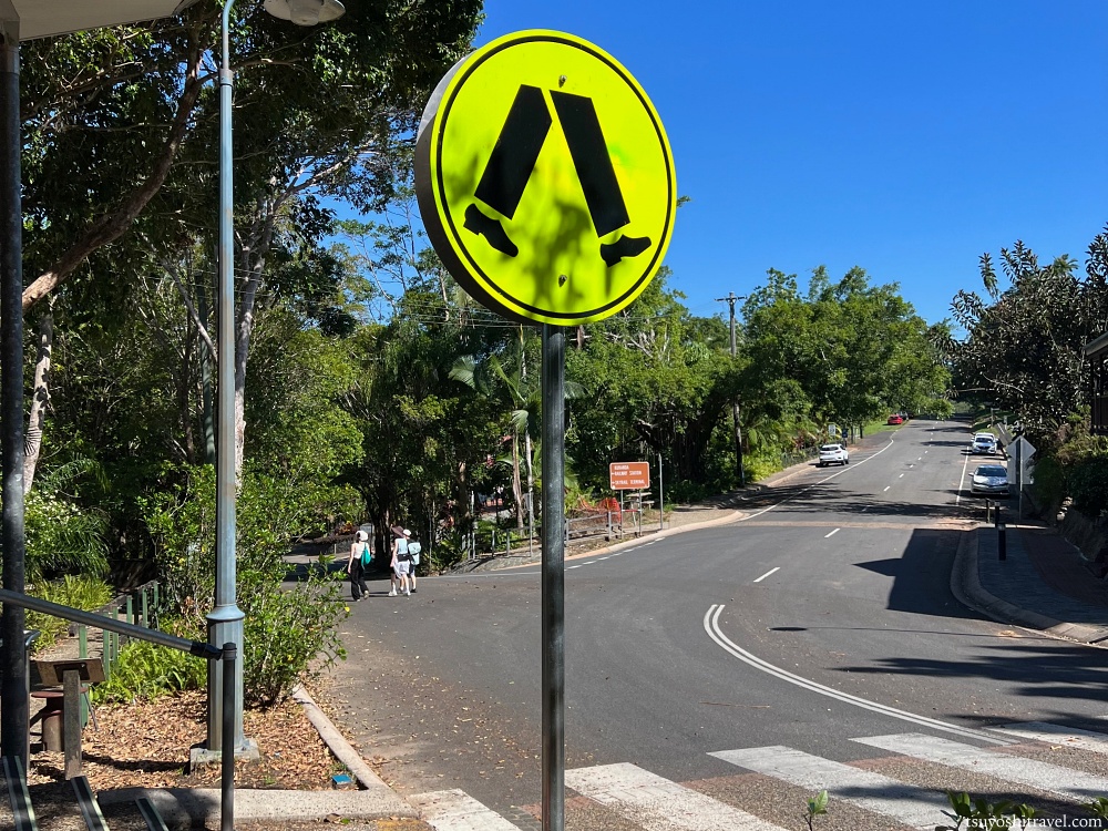 オーストラリアを歩いていると至る所に見かけるこちらの看板は横断歩道があることを示す看板なのだという。