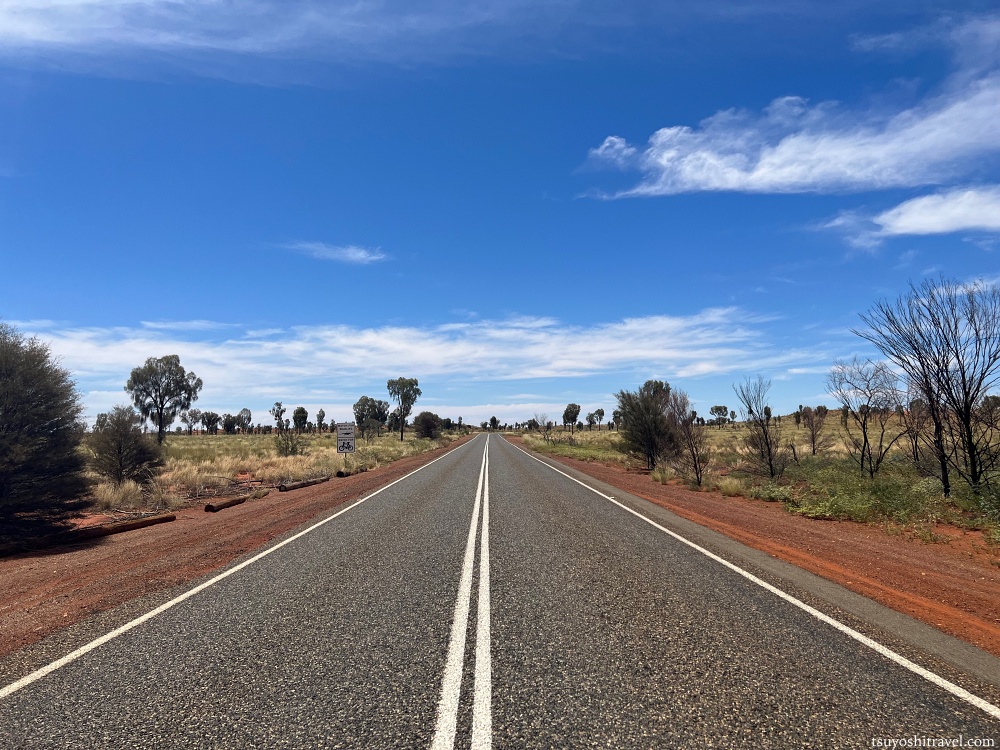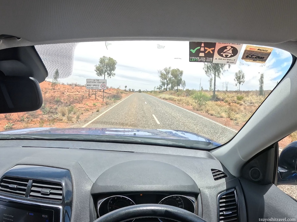 エアーズロック空港周辺を出ると、普通の一般道にも関わらず、一気に速度制限が110kmとなるのは驚きである。