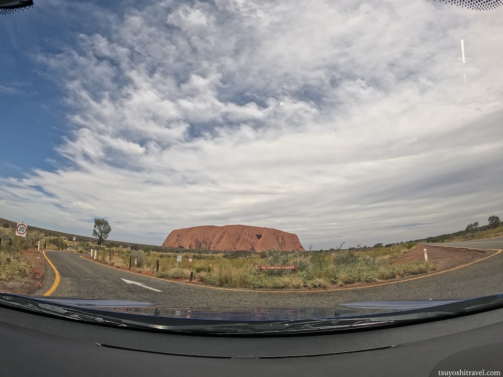 エアーズロック空港から数十分ドライブをすると、進行方向左手に「ウルル(Uluru), エアーズロック(Ayers Rock)」が見えてきた。